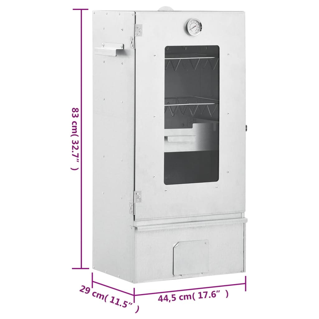 Wykorzystaj tę wielofunkcyjną wędzarnię ze stolikiem, aby przygotować ucztę i cieszyć się czasem spędzonym z rodziną na świeżym powietrzu! Trwały materiał: stal to niezwykle twardy i mocny materiał. Zapewnia wytrzymałość i stabilność. Galwanizacja zapewnia lepszą ochronę przed rdzą oraz sprawdza się przy produktach przeznaczonych do użytku na zewnątrz.Spora przestrzeń wędzarnicza: wędzarnia ogrodowa zapewnia dużo miejsca do wędzenia mięs, ryb, kiełbas itp. Dołączone haczyki w kształcie litery S i kratki sprawią, że użytkowanie będzie wygodniejsze.Wskaźnik: wędzarnia jest wyposażona w termometr, aby sprawdzić temperaturę w jej wnętrzu. Dzięki szklanemu okienku możesz także obserwować wędzone produkty, aby zapewnić ich idealne uwędzenie.Śruba regulacyjna: możesz wyregulować wysokość mebl