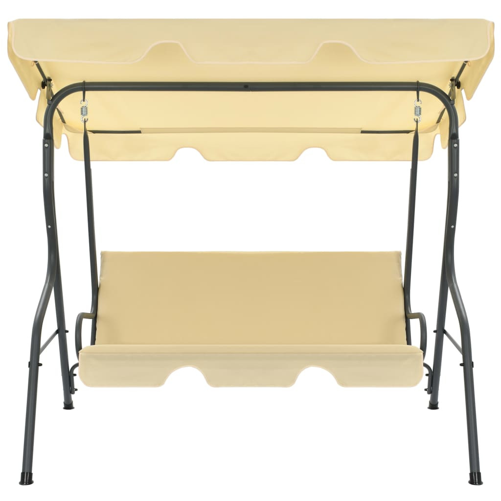 Stabilność i trwałość konstrukcji gwarantuje solidnie pomalowana stalowa rama. Wygodne zagłówki i siedzisko wykonane z wodoodpornej, łatwej w utrzymaniu czystości tkaniny poliestrowej sprawiają, że zadaszona huśtawka to doskonałe miejsce na relaks. Dodatkowo oferuje schronienie przed palącym słońcem. Ciesząc się letnim wiatrem, kołysz się na huśtawce ogrodowej w pełni komfortowo.