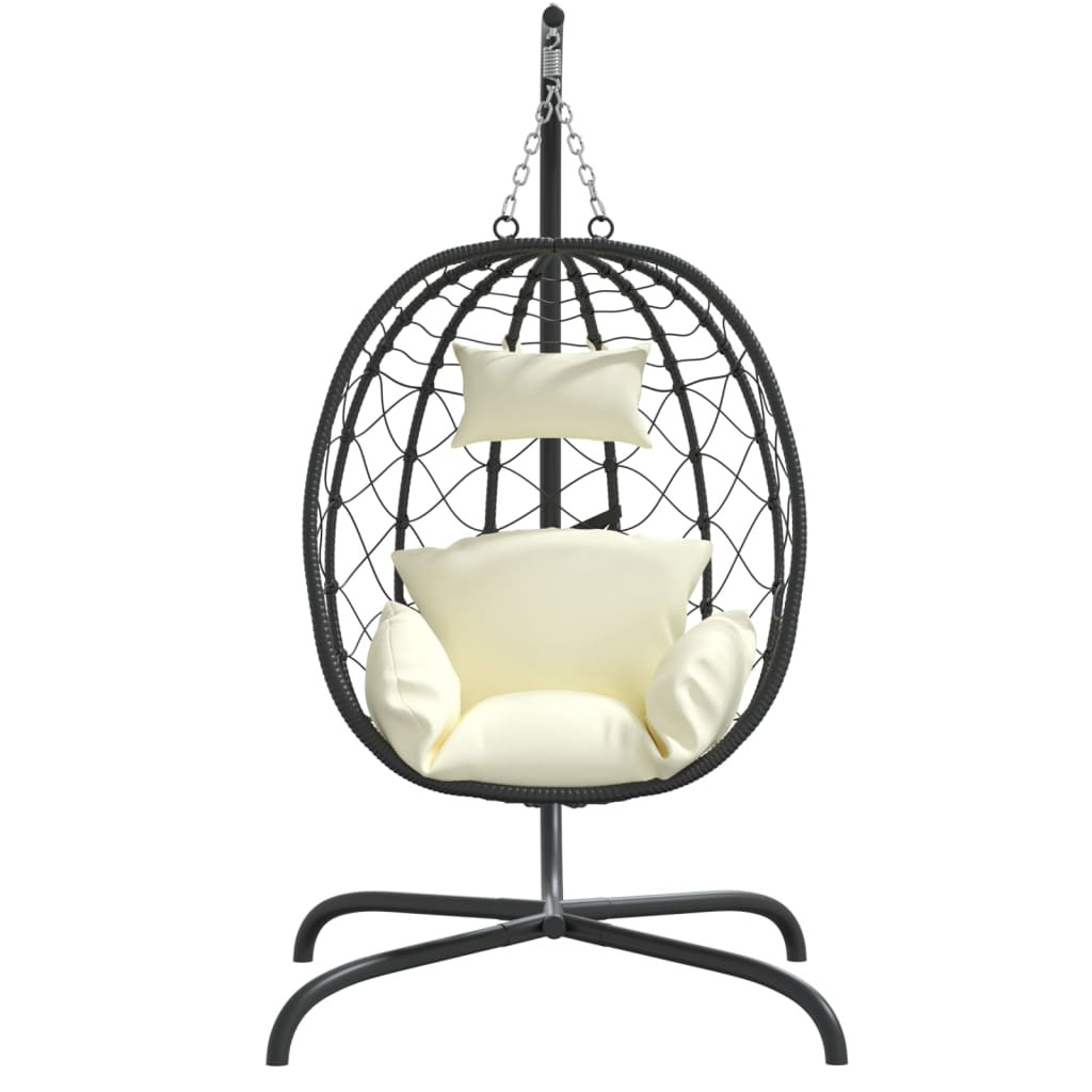 Usiądź i ciesz się czasem relaksu w swojej przestrzeni mieszkalnej za sprawą tego fascynującego krzesła wiszącego w formie kokonu. Trwały materiał: rattan PE, znany również jako polirattan, jest odporny na czynniki pogodowe i łatwy do utrzymania w czystości. Zachowuje świetny wygląd w warunkach zewnętrznych przez długi czas. Jest też bardziej ekonomiczny niż inne materiały, oferując świetną jakość, wygodę i estetyczny wygląd.Solidna i stabilna rama: rama wiszącego krzesła została wykonana z malowanej proszkowo stali. Stal to niezwykle twardy i mocny materiał. Zapewnia wytrzymałość i stabilność. Proszkowa powłoka na stalowej ramie stanowi warstwę ochronną.Konstrukcja bujana: w wolnym czasie możesz zrelaksować się na tej huśtawce, delikatnie kołysząc się w przód i w tył.Komfortowe siedzi