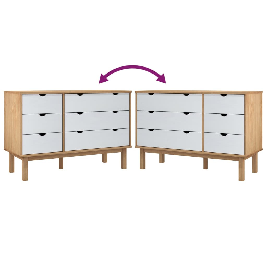 Klasyczna, drewniana komoda z szufladami to doskonały wybór, jeśli chcesz wnieść drobinę skandynawskiego stylu do wystroju swojego domu. Lite drewno sosnowe: lite drewno to piękny, naturalny materiał. Drewno sosnowe ma prostą strukturę słojów, a sęki nadają mu wyjątkowy, rustykalny wygląd.Stabilna rama: drewniana rama zapewnia trwałość i stabilność mebla.Spora przestrzeń do przechowywania: szafka posiada 6 szuflad. Przestronne szuflady umożliwiają przechowywanie i uporządkowanie rzeczy.Solidny blat: wierzch komody idealnie nadaje się do wyeksponowania roślin doniczkowych, ramek ze zdjęciami i przedmiotów dekoracyjnych.Swoboda montażu: szuflady można zamocować po lewej lub prawej stronie. Możesz wybrać sposób montażu w zależności od swoich potrzeb. OSTRZEŻENIE:aby zapobiec przewróceniu