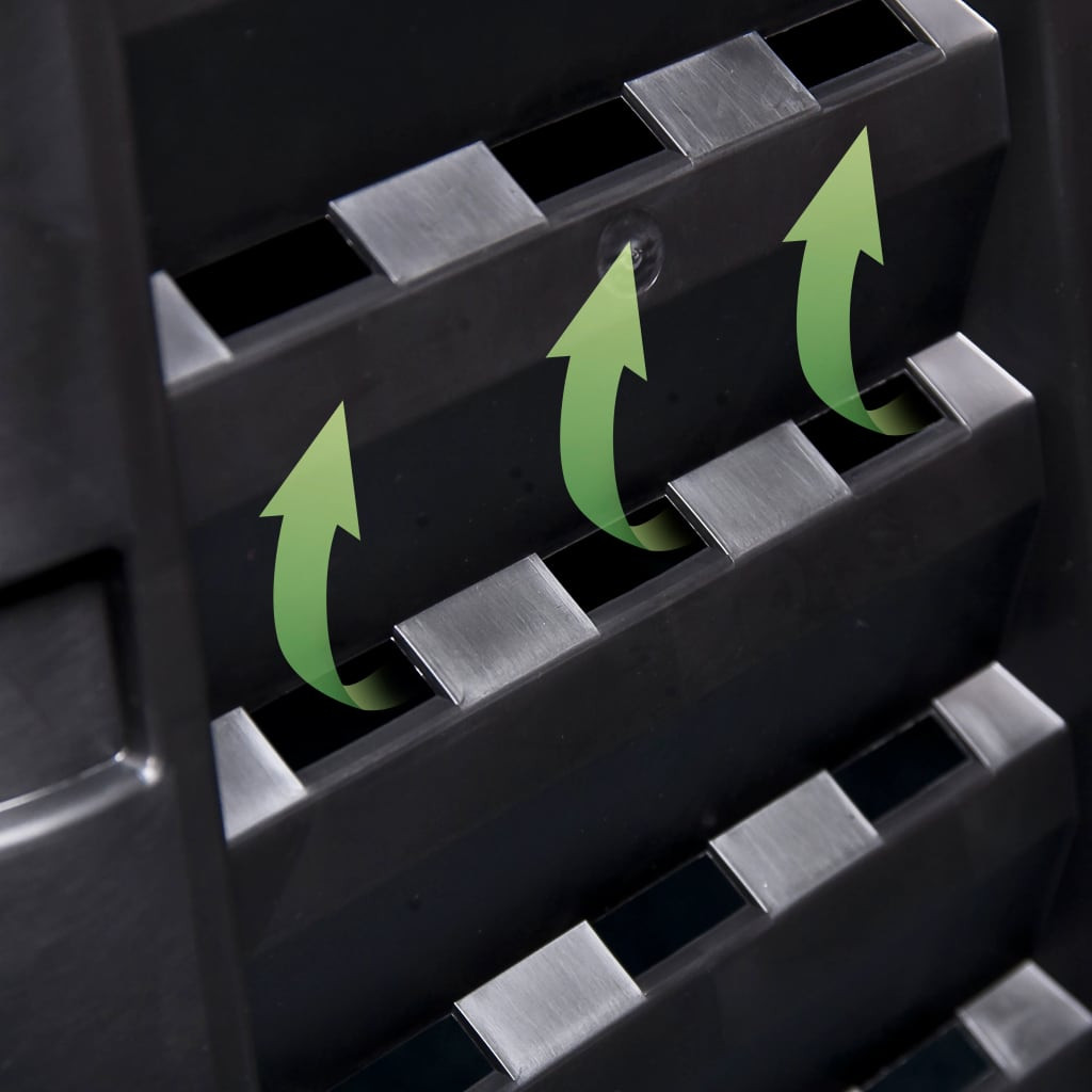 Dzięki wywoływaniu intensywnego ciepła wewnątrz kompresorowanego pojemnika zachęca on do szybszego procesu rozkładu bakteryjnego, skutkując w efekcie produkcją wyjątkowo wartościowego humusu. Pomimo swojej kompaktowej budowy, pojemnik do naturalnej fermentacji w ogrodzie cechuje się dużą pojemnością, zajmując minimalną ilość przestrzeni. Ułatwienie stanowi też szereg funkcji, takich jak pokrywy ułatwiające napełnianie, klapka ułatwiająca ekstrakcję nawozu, system nawadniania kroplowego, zatrzaski boczne zapewniające stabilność, solidne zawiasy na klampie, ergonomiczny uchwyt oraz rozsuwane drzwiczki z poręcznymi uchwytami, co znacząco ułatwia korzystanie z tego produktu.
