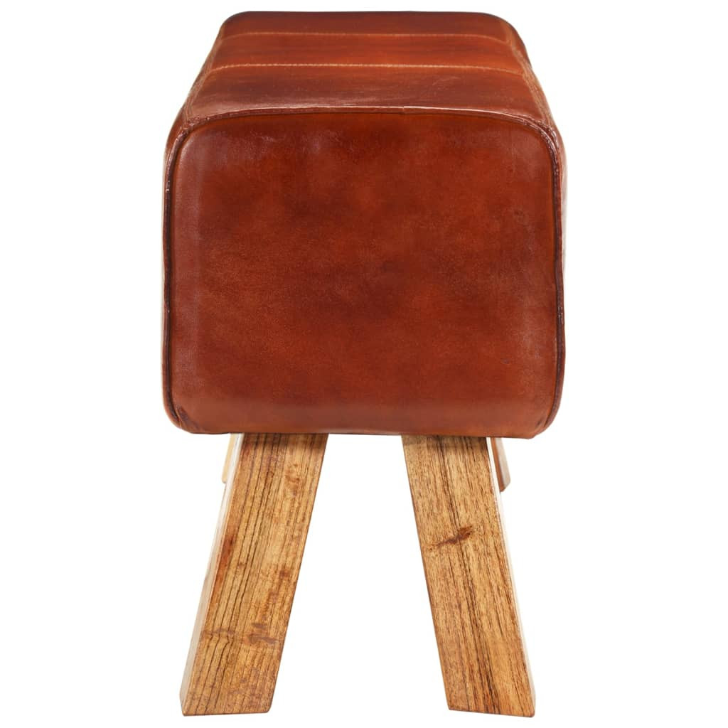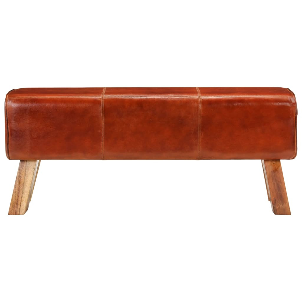 Stwórz nieco klimatu vintage w swojej przestrzeni mieszkalnej dzięki tej ławce z prawdziwej skóry inspirowanej kozłem gimnastycznym. Gładka skóra naturalna: prawdziwa skóra to ponadczasowy materiał. Charakteryzuje się trwałością oraz łatwością w pielęgnacji. Gładka powierzchnia nadaje produktowi luksusowy wygląd, zapewniając jednocześnie optymalny komfort.Drewniane nogi: nóżki z litego drewna mango zapewniają przyrządowi solidność i stabilność.Dodatkowy komfort: gruba wyściółka zapewnia dodatkowy komfort siedzenia. Warto wiedzieć:Kolory i usłojenie poszczególnych egzemplarzy mogą się różnić, dzięki czemu każdy z nich jest unikatowy. Wysyłka przebiega losowo, dzięki czemu otrzymasz zupełnie wyjątkowy i niepowtarzalny produkt.