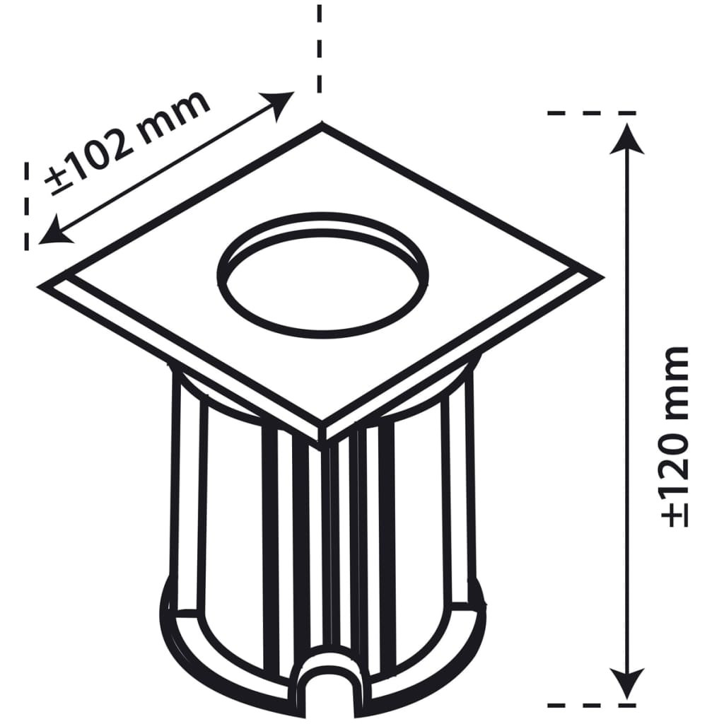 Ten produkt wpustowy zrealizowany jest ze stali kwasoodpornej, tworzywa sztucznego oraz szkła. Zdolny jest utrzymać obciążenie sięgające 800 kg. Lampa jest dostarczana z energooszczędną żarówką LED (GU10) i emituje światło o strumieniu 230 Lm w ciepłym, białym odcieniu.