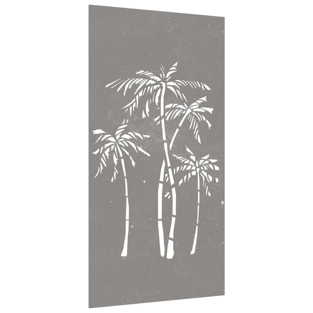 Zamień pustą ścianę lub ogrodzenie w dzieło sztuki za sprawą tej ogrodowej ozdoby ściennej. Trwały materiał: stal kortenowska znana jest również jako stal odporna na warunki atmosferyczne. Ze względu na swoją naturę jest antykorozyjna. Przy pierwszym kontakcie z warunkami atmosferycznymi tworzy rdzawą warstwę chroniącą przed korozją. Dzięki temu nie trzeba jej malować. Pomoże to zaoszczędzić na kosztach konserwacji i napraw. Charakterystyczny brązowy kolor stali kortenowskiej z pewnością przyciągnie wzrok. Wreszcie stal odporna na warunki atmosferyczne jest wyjątkowo trwała i wytrzyma próbę czasu.Wyjątkowy design: metalowa ozdoba ścienna ma wycięty wzór w palmy i stworzy naturalną atmosferę w Twoim ogrodzie.Łatwy montaż: ozdobę ścienną można łatwo zamocować za pomocą znajdujących się z