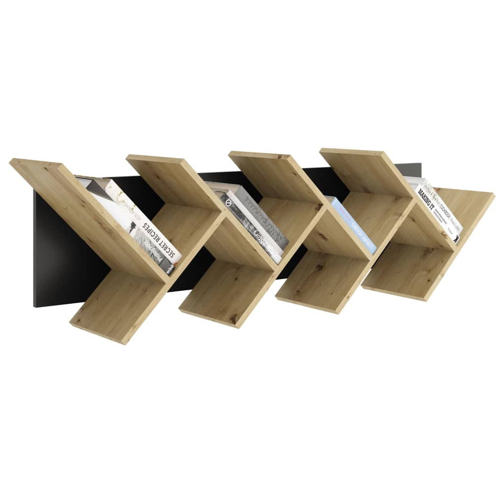 Wypełniając "gałęzie" dębu i czerni ulubionymi książkami, stworzysz efektowną półkę ścienną, pełniącą funkcję zarówno praktyczną, jak i dekoracyjną. Składa się ona z 4 przegródek ułożonych pod interesującym kątem, tworzących nietuzinkowy wzór.