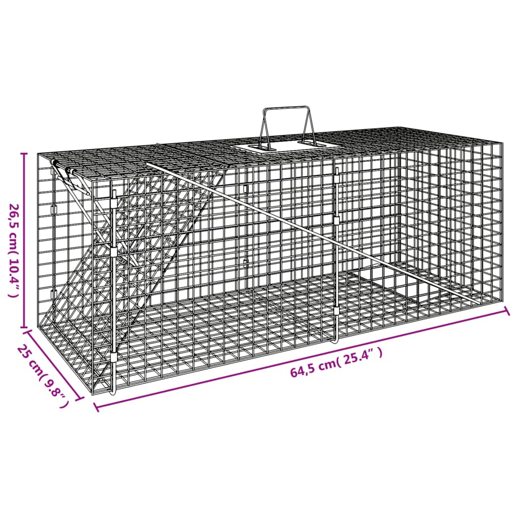 Ta pułapka na zwierzęta jest idealna do pozbycia się niechcianych gości bez wyrządzania im krzywdy. Wytrzymały materiał: pułapka żywołowna wykonana jest z wytrzymałej, żelaznej siatki. Żelazo to mocny i wytrzymały materiał, popularny w budownictwie i przemyśle meblowym. Galwanizacja oferuje lepszą ochronę przed korozją i jest przydatna w przypadku produktów, które będą używane na zewnątrz i w trudnych warunkach środowiskowych.Bezpieczna i humanitarna pułapka: pojedyncze drzwiczki pozwalają zwierzętom w pełni wejść do pułapki, zanim się zamknie, co zwiększa jej skuteczność. Małe oczka siatki zapobiegają ucieczkom. Pułapka na gryzonie ma gładkie krawędzie wewnętrzne, co zapobiega zranieniu zwierząt.Wygodna konstrukcja: dzięki poręcznym wymiarom ta humanitarna pułapka na myszy może być z