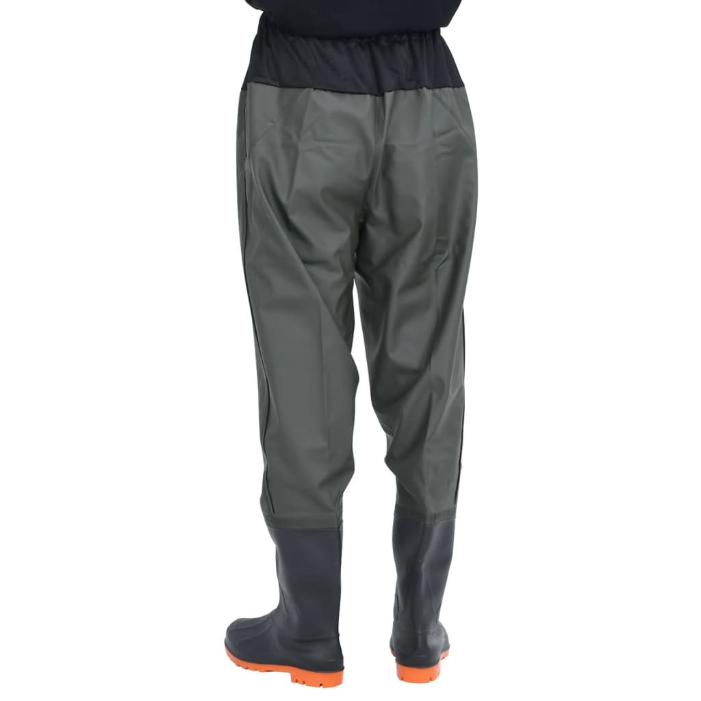 Te sięgające do pasa wodery są trwałe i elastyczne oraz sprawdzą się idealnie do wędkowania, polowania, prac w gospodarstwie i innych aktywności. Odporność na wodę: ta specjalnie powlekana tkanina poliestrowa jest miękka od wewnątrz i wytrzymała na zewnątrz. Dzięki pikowanym i klejonym szwom oraz dołączonym butom wodery te są wodoodporne. Ochrona: spodniobuty zapewniają ochronę przed wodą, błotem i innymi czynnikami, dając poczucie suchości oraz wygody podczas pracy lub aktywności na świeżym powietrzu.Wbudowane buty dla wygody: dzięki zintegrowanym butom strój ten łatwo się zakłada i zdejmuje, co pozwala zaoszczędzić czas i wysiłek w porównaniu do woderów i butów zakładanych osobno. Wiele zastosowań: spodniobuty to świetny element wyposażenia dla wędkarzy i rolników, będą idealne równi