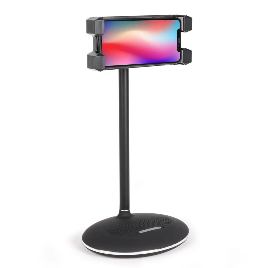 Ten wspornik do tabletu z głośnikiem firmy Livoo stanowi doskonałe rozwiązanie do zamocowania tabletu i smartfona, na przykład podczas prowadzenia rozmowy wideo.