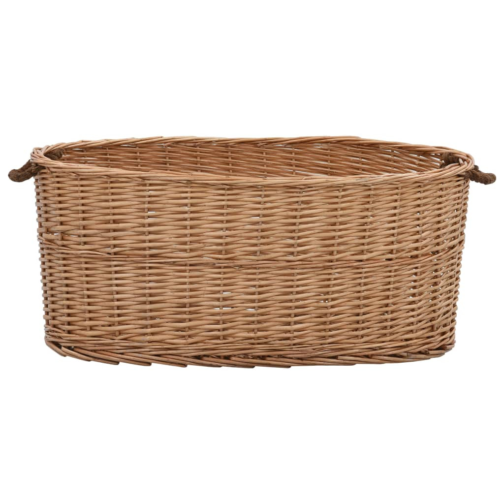 Stworzony z surowej wikliny, kontener na drewno opałowe emanuje tradycyjnym wdziękiem i będzie atrakcyjnym dodatkiem w wiejskim stylu. Dwa sznurkowe uchwyty ułatwiają przemieszczanie pojemnika. Wytrzymała, solidna budowa gwarantuje długotrwałą funkcjonalność produktu. Uniwersalny wiklinowy kosz na drewno może również pełnić rolę kosza na pranie lub do przechowywania warzyw.
