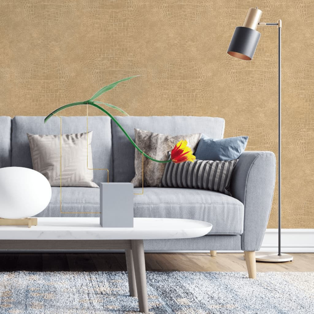 Charakteryzuje się wzorem imitującym skórę krokodyla, wykonanym w subtelnej, jednolitej palecie barw, co dodaje nowoczesnego akcentu Twojej przestrzeni wewnętrznej.