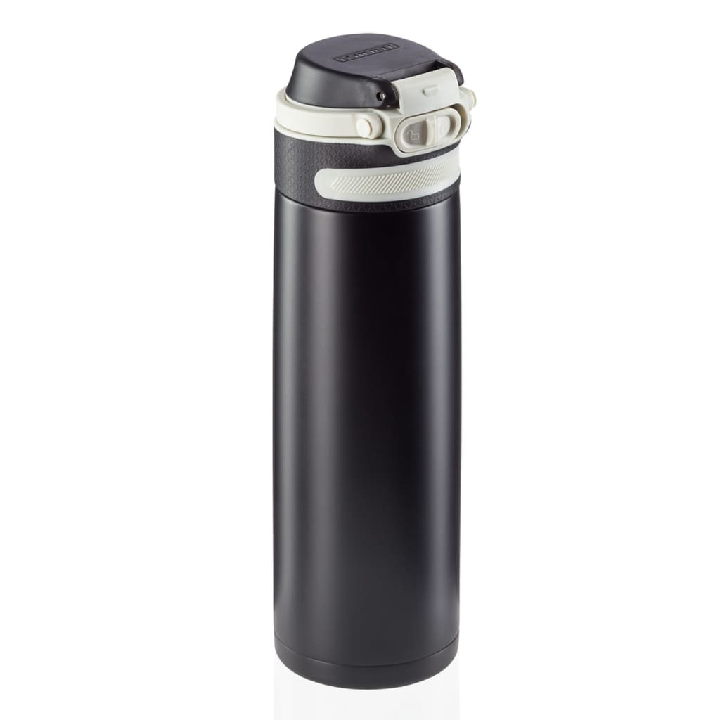 Nowoczesny termos Flip o pojemności 600 ml od renomowanej marki Leifheit to doskonały wybór dla każdego, kto pragnie delektować się aromatyczną herbatą lub kawą poza własnymi czterema kątami. Zastosowanie eleganckiej stali nierdzewnej oraz klasycznego, ciemnego odcienia sprawia, że termiczny kubek przyciąga uwagę swoim wyglądem.