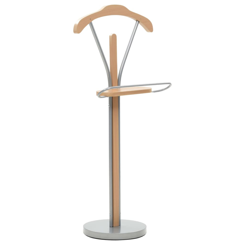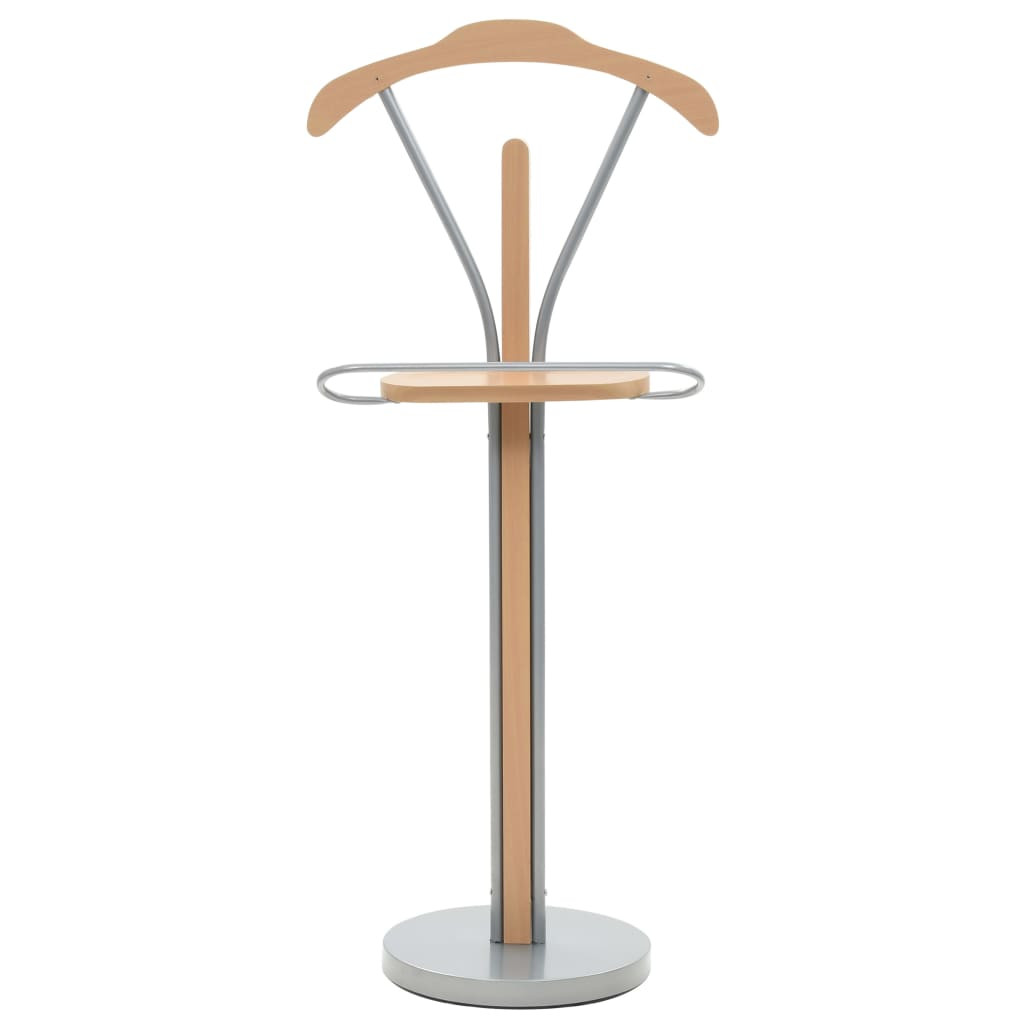 Stojak wykonany z płyty MDF oraz osadzony w stalowej ramie. Dzięki swojej lekkości i łatwości przemieszczania, zapewnia wygodę użytkowania. Solidna podstawa gwarantuje stabilność i trwałość. Dodatkowo, konstrukcja górnego wieszaka zapobiega wysunięciu się ramion z ubraniami. Niezwykle praktycznym dodatkiem jest niewielki stolik, który umożliwia uporządkowane przechowywanie okularów, kluczy, portfeli czy zegarków, zawsze pod ręką.